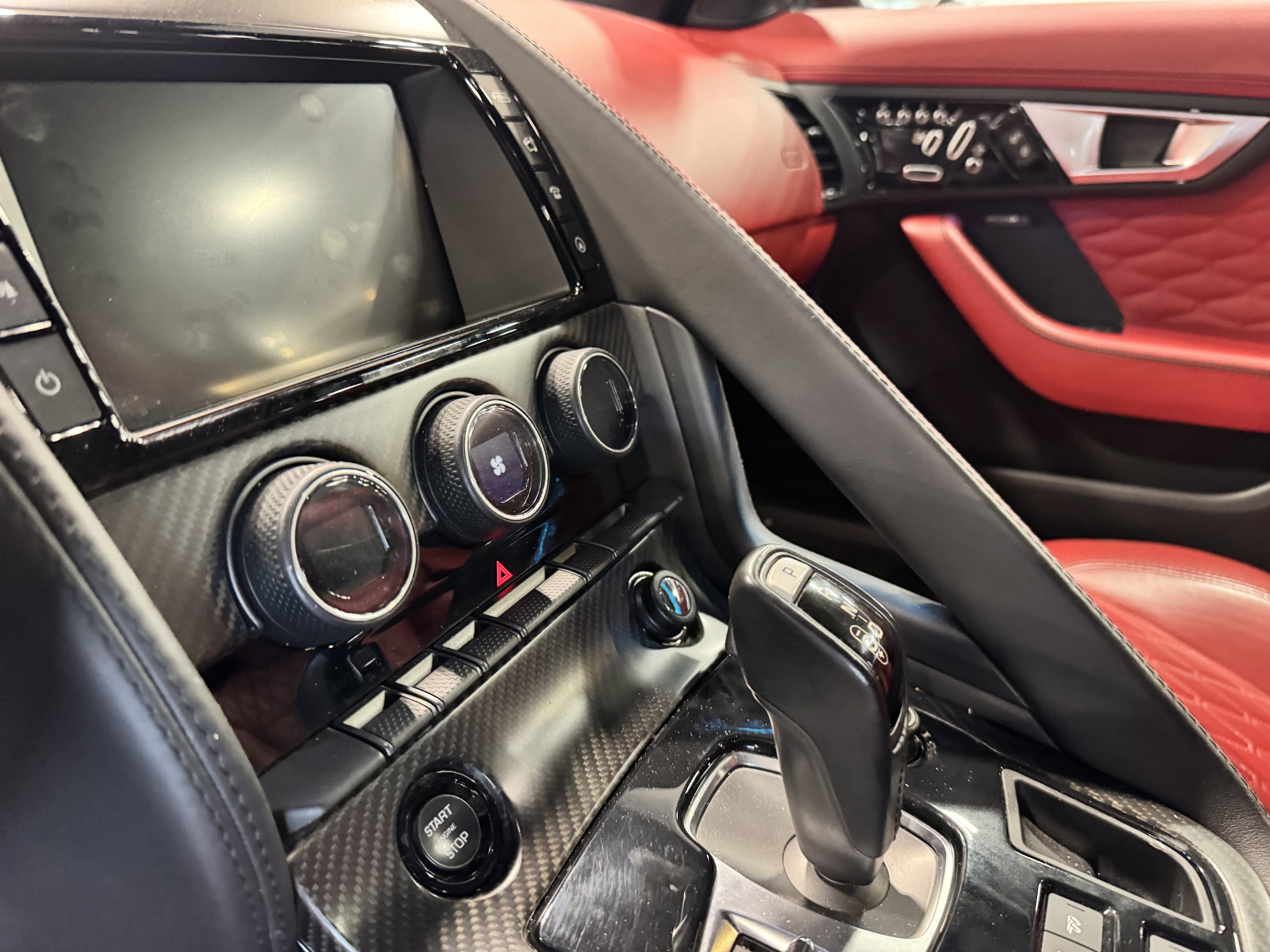 Finished in Ammonite Grey Metallic over a bold Red leather interior, this SVR is exceptionally well-optioned, featuring the Extended Leather Package, carbon fiber center console, illuminated door sill treadplates, and red seatbelts for added visual drama. The 14-way heated performance front seats provide outstanding comfort and support, while premium materials like the suede headliner and aluminum accents elevate the cabin.